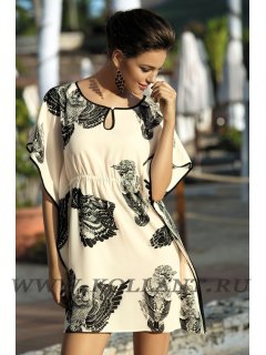 Оригинальная короткая туника прямого силуэта из искусственного крепа с оригинальным принтом. Модель с цельновыкроенными широкими рукавами и боковыми разрезами. Круглый вырез горловины полочки с разрезом "капелька", который застегивается на навесную петлю и декоративную пуговицу, а так же круглый вырез горловины спинки, низ рукавов и боковые срезы туники, окантованы узким отделочным кантом, что придает модели неповторимый образ. По линии талии проложена тесьма (резинка), которая регулирует желаемый объем изделия. Состав: 100% полиэстер