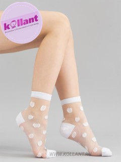 Детские фантазийные носки из хлопка и прозрачной синтетической мононити. Пятка и мысок модели усилены, по всей длине размещен рисунок "крупный горошек".