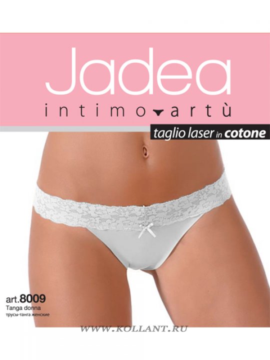 Трусы-танга из хлопка с эластаном, на поясе широкая кружевная резинка с фронтальной аппликацией в виде банта, заниженная талия, лазерная обработка края.