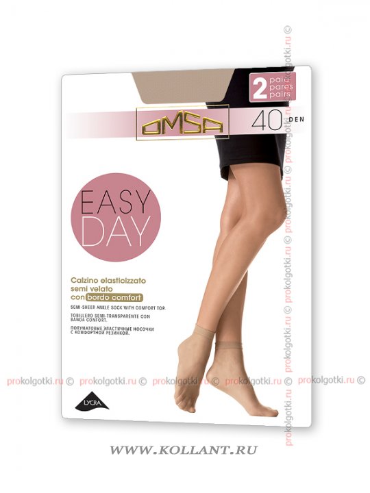 EASY DAY 40 calzino - эластичные средней плотности (40 DEN) женские носочки, серии EVERY DAY. Уже не тонкие, но еще прозрачные, с гладким шелковистым эффектом. Свободного размера (один универсальный размер). 2 пары в упаковке.