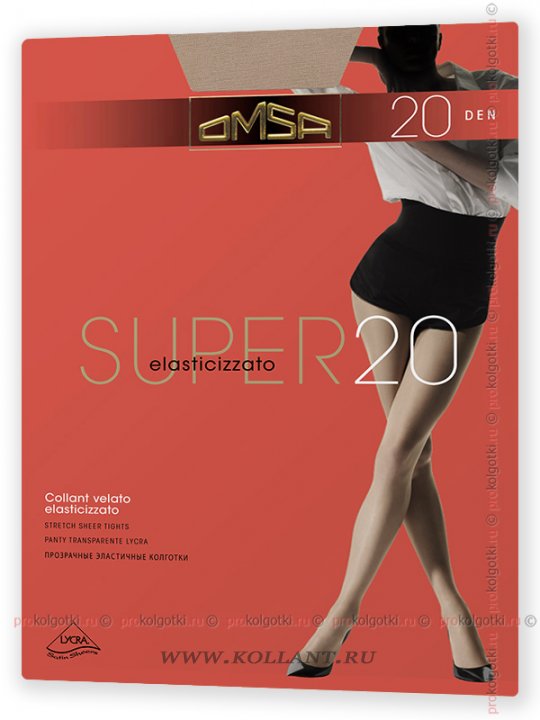 SUPER 20 - эластичные тонкие (20 DEN) колготки на каждый день, серии ELASTICIZZATO. Прозрачные, с гладким шелковистым эффектом.